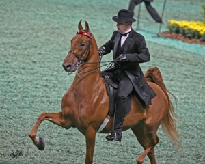 Landmark Farm announces the sale of Majestic's Jackie O to the Amy Dix Rock and Albert Dix Family. Debuting under saddle during Louisville, Majestic's Jackie O was guided to the ASR National Three-Year-Old Three-Gaited Futurity Reserve World's Champion title by Robert Gardiner. During the class the elegant daughter of Simply Majestic and Anacacho's Desdemona caught Rob Byers eye who was looking for a new horse for Rock after she recently sold That's Exactly Right. Majestic's Jackie O will remain at Landmark Farm through the All American Classic when Gardiner will present her for Amy Dix Rock in the Three-Year-Old Three-Gaited Sweepstakes.