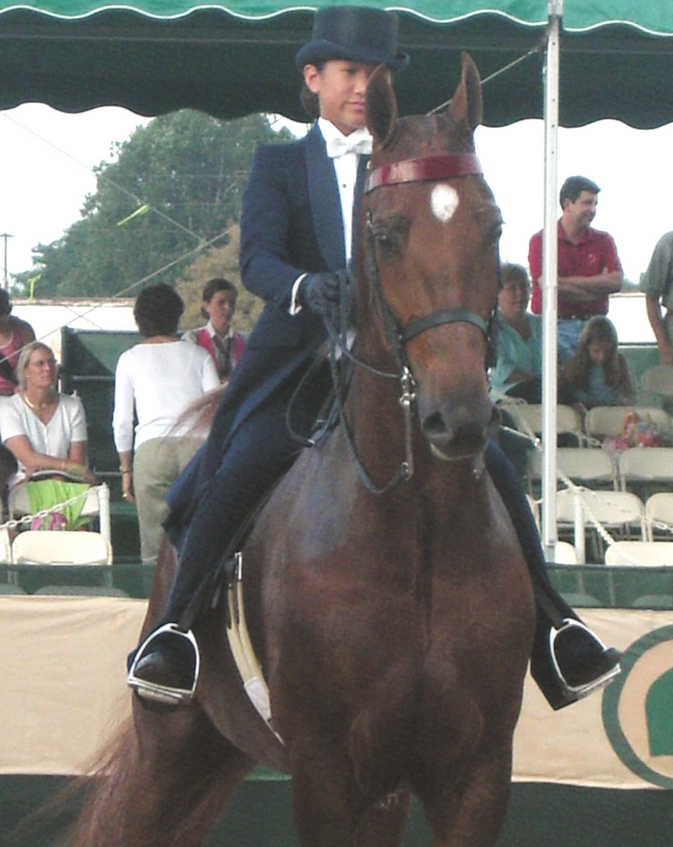 The only disappointment of the evening, if one would dare call it that, was the Open Five-Gaited Stallion/Gelding Stake. With 14 entries listed in the program, six horses actually showed up. Not to take anything away from Lionel Ferreira who had a stunning and flawless ride on Carswald Prince’s Dominoe for the win. However, people were scratching their heads and wondering where the rest of the horses were.