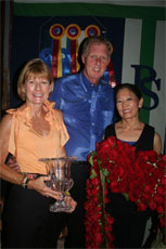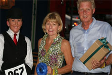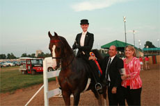Sarah and Rob Byers with Theresa Vonderschmitt after Rob's Five-Gaited Championship win with Bravo Blue.