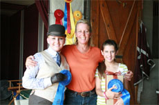 Mary Gaylord McClean and Sarah and Rob Byers after Mary's Ladies 5-Gaited win on Lynn Williams, her second blue of the night.