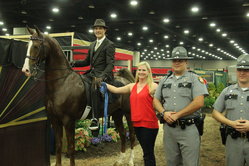 Always the promoter, Lionel Ferreira invited a couple of state troopers to join the victory photo after he won the Three-Gaited Over 15.2 World's Championship with Sara McDonald's Attache's American Patriot.