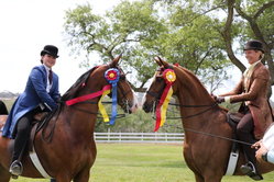Champion and reserve placings in the Amateur Three Gaited Park Stake at Diamond Jubilee were captured by Liz Bolton Stables barnmates, Undulata’s Why Nut with Hannah Stanford and Undulata’s Optical Illusion with Carolyn Melka.