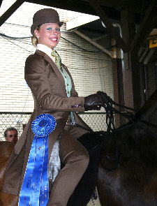 Maya Manilow was back in the ring right after the lunch break. She had Top This in top form under the watchful eye of Dick Obenauf. They took the Junior Exhibitor Country Pleasure 13-and-Under qualifier. Top This won the Amateur Park Mare qualifier here back in 2002 with Stacy Arnold Englert. Sing My Song and Kristen Smith were reserve. This team won it all in the 13-and-Under two years ago and will be looking to try again later this week.
