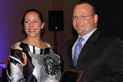 Merriehill Farm was honored by the AMHA as the Promoter of the Year. Mark Bodnar accepts the award from Ling Fu Wylie.
