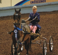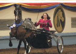 Many people in Monday night’s stands wondered if the final class of the evening would be any kind of predictor of things to come later in the week. This night’s finale included four multi-titled park harness stallions vying for the Grand National title. The best of the best showed off their sharp contenders and SLB Da Vinci topped this fine crop in unanimous fashion, receiving the crowd’s approval with Bob Hughes on the lines for Sheryl Bartolucci. The 2005 New England Park Harness Champion CVH Celtic Command, was presented masterfully by Bernard Parker to the reserve finish for Catherine Haynes.