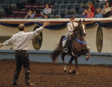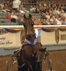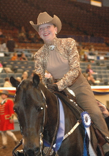 With the sixth and last unanimous vote of the day awarded to Star of Midnight, Virginia Adams visited winner’s circle for the second time today. The former four-year-old world champion mare had already earned a 2005 grand national title with trainer Garn Walker. Reserve was the former world champion junior exhibitor horse, WDD Wild Thing with Judy Jajtner up for Haley Coplen.