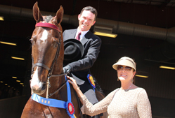 Melinda Moore met trainer David Blevins at the out gate after he won the park stake with her entry The Distinguishing Mark.