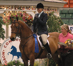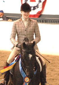 The Hunter Pleasure division featured many outstanding classes of both quality and quantity. JAR Golden Boy showed off his size and stature to top the field as the Open Hunter Pleasure Champion. Cindy Mugnier guided Jennifer Roberts' Cedar Creek Harlequin son to the tricolor following a blue ribbon performance in the open class. It was a tricolor repeat from 2005 as Laura Reed and her expressive bay mare SMS Moredelay followed up with the reserve tricolor.