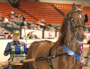 Grand National Champion Straight Up headed straight down victory lane as the entertaining Copper Beech entry lit up the ring in the UPHA Pleasure Driving Classic directed by Harry Sebring. The three-year-old class also produced an impressive winner as Highover To The Nines and Kass Booth collected the blue ribbon for Kay Thompson.