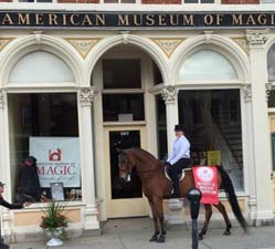 On November 7th, Emma Hayman & Up-Hi Christian, an eight-year-old Morgan gelding, rode through downtown Marshall, Mich. The duo was advertising the American Museum of Magic in Marshall, the old school way!