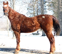 - Socks is a handsome, sound gelding with papers – Nashville Sound – we do have a transfer for him. He is 20 and very laid back. He will walk, trot and canter both ways, but being lazy will fall out of the canter, and you have to encourage him to get him to trot. He is easy to deal with and we have had small children ride him with no problem. Though we haven’t ridden him on the trails –too cold here - he should be fine. He was good on the road for the Amish, just too lazy.