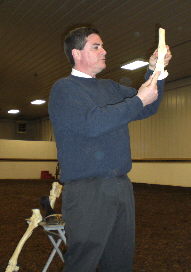 As the old saying goes, a horse is only as good as his feet. Farrier Sean Travers and Dr. Kris Koss gave pertinent explanations of how and why horses need specific care for the show season. Certainly every horse owner was well accounted for during this demonstration as subjects such as footing, joint supplements and exercise routines can have a strong impact on a horses show ring performance. Dr. Koss brought several models of the horse skeleton to further exhibit the different parts of the foot and ways horse owners can better serve their horse.
