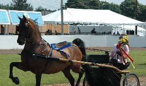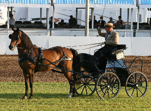 In what would be the final class in the grandstand ring for 2007, World Champion Whitemud Dixie Dance King put on a fine show to add the East Coast Park Harness Reserve Championship to the Sebring Stables banner. Harry Sebring guided Patricia Lloyd’s sporty four-year-old to the reserve tie in the qualifier as well.