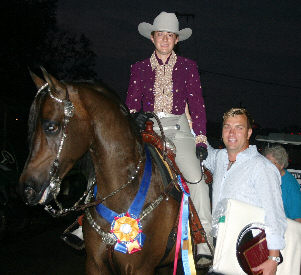 It was truly a memorable victory for Mike Carpenter, “I couldn’t be happier than to train and present the first horse to win the Noble Flaire Memorial Trophy. Noble Flaire was the greatest horse I have ever been around, and this victory with his grandson is a great honor. I just love Thriller and was delighted when Rick (Lane) and George (Schott) sent him to me. He is a wonderful and kind horse, and he is fun to show. Tonight I called on him and he answered the call.”