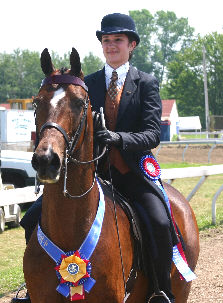 Nicholas Roberts started off his 2007 Northampton tricolor streak with the winning ride in the Walk-Trot Hunt Seat Equitation 9 & Under Championship partnered with TJB Opinionated. They started off with the red ribbon ride in the qualifier under the watchful eye of Cindy Mugnier. Katie Howe earned her first of two reserve tricolors coached by Judy Nason and cheered on by her family and friends. Rebecca Beets showed off her polish as she made the victory pass in the qualifier directed by Ann Scussell.