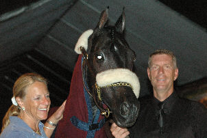 “Early one morning at the show, Wendy took Sundance for a walk on the track. Sundance refused to go back to the barn, turning Wendy around and demanding to be led to the In Gate. Keely and I were alone in the ring and watched this proud stallion march up the track as the memories came back to him. It was a sight I will never forget.