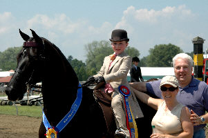 Saturday morning offered a chance for the industry’s youngest competitors to shine. The Leadline Saddle Seat 7 and Under featured a fine group of youngsters gaining some early show ring experience. Genevieve Kerr displayed her budding talent as she earned a trip down victory lane to the cheers of the appreciative audience under the direction of Jean DeGutis. The field of promising young equestrians also included ribbon presentations to Charlotte Smith, Kellie Saccocia, Nicole Kaufman, Tahla Gatewood, Carly Lettre, Jordy Shepard, Darian Shepard, Erin Flannery and Kira Gendjar.
