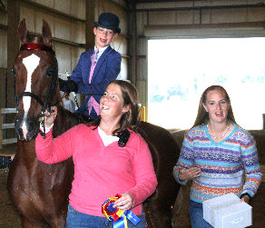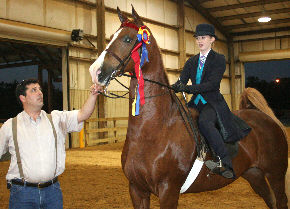 Making two more trips down victory lane were Marie Gwinn and Monsignor in the adult country pleasure division. Reserve in the championship went to Expectations and Mary Higgs, who had won the novice rider qualifier. Ginger Reagan rode Hasani to reserve honors for Amy Roberts.