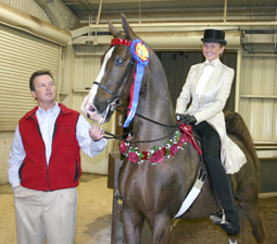 CH Callaway's Independence Day and Victoria McCune emerged from the highly competitive junior exhibitor gaited division with the championship streamers and qualifying blue.