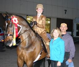 Lonnie Quarles and the Tony Ricker family celebrated Heir's Treasure's Three-Gaited Park Championship. Bred and raised by the Ricker family, Heir's Treasure is the last full brother to World's Champion Sweet Virginia.