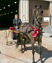 Nancy Lassiter won four classes including two with Hackney Pleasure Driving Pony Grand Champion Once Upon A Time.