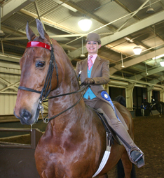 Brittany McGinnis scored two wins with Junior Exhibitor Three-Gaited Grand Champion Ostentatiously.