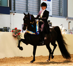 With more than 1,000 horses attending the five-day Equifest in Peterborough, UK, Angela Conner Bulmer rode her new mount, 12-year-old multi-titled American World Champion, Optimus Prime GCH (Futurity French Command x Erotic Dancer), to win the Supreme Foreign Breeds Champion of the Show! This grand Morgan stud outshone 16 other breeds including Andalusians, Friesians, Nordic, Icelandic, Saddlebreds, Arabians, and an assortment of crossbreeds to win this top title.