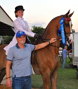 Proud dad, Anthony Palmer, with Katie Palmer and her new mount Nuttin’ But the Best after winning the Big D Junior Exhibitor Three-Gaited.