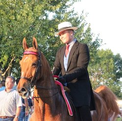 Parker Smith and True Blue Cat won Shelby County Fair's Junior Exhibitor Five-Gaited Pleasure Reserve Grand Championship for Pieces Of Perfect.