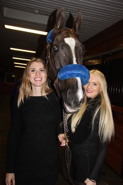 Kate and Tara Grom are pictured with Revelation Farm's mainstay, CH Perfect Vengeance. The multi-titled world's champion was presented by Tara as part of the Revelation Farms Open House this past Saturday night.