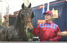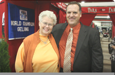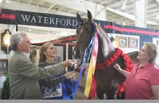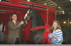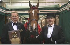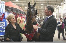 Breeder Judy Whitney Harris along with Don Harris congratulated Frances Pugh on JW That Special Flaire's fourth consecutive Park Harness World Championship victory.