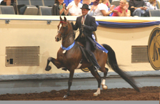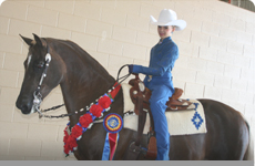 Alison Bendele and MEM No Inhabitions sped away with the Amateur Roadster Under Saddle victory directed by The River's Edge team of Bob Kellert, Mary Cockriel and Vince LeMaster.