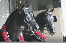 DJR Black Nitro and RG Teton's Captain proudly wore the roses in the Multiple Carriage Pleasure Driving World Championship for Guy and Karen Brown.