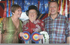 Nancy Anderson with Lynda and Andy Freseth after her seventh Country Pleasure Driving Championship with Callaway's Pretty Penny.