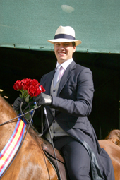 Heather Burglass was loaded down with her daughter's coat, derby, roses and assorted awards following Caroline's win with My Teddy Bheir in the Junior Exhibitor Five-Gaited Championship.