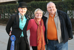 Margaret and Todd Poovey celebrated with their daughter Allie after her blue ribbon debut aboard Callaway’s Gabriel in the Junior Exhibitor Five-Gaited 13 & Under class at Raleigh Spring Premier.