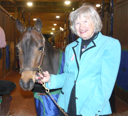 Ronnie Graham met Patricia Bonati and Piece de Resistance in the winner's circle after they won the Junior Fine Harness class.