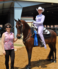 Winners of the Morgan Western Seat Equitation Class and Championship, Sarah Pruetz and Lone Star Bill, with mom, Gina Pruetz from 10 Star Ranch.