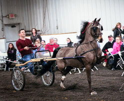 David Rand made the winning bid and Jason Douglass enjoyed the drive with Regal's Monarch LF at the UPHA 14 / NEMHA Winter Weekend Getaway held at Taylor River Farm. The Lampropoulos family brought the world's champion pony for owner Dr. Andrea Parkman. photo by Dallys Malenfant.
