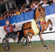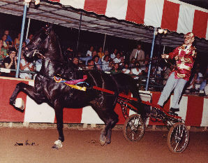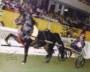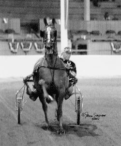 Debbie Foley is well known for her ability with a road horse. She has started five world’s champions: Private Party, All Glory, Dark Side, Bar None and Wuddacomover. Some came from the racetrack, perhaps through Chappy Chapman. Private Party, who dominated the bike division in the late 1990s, made the transition from pulling an Amish buggy to world’s champion bike horse.