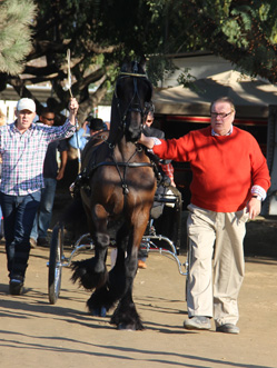 Mike Roberts made the trip to Jingle Bell and headed Otto and Dick Martin on their way to the ring for the Baroque Horse Fine Harness Championship which they won under the direction of trainer Lance Bennett.