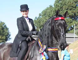 Ronald Van De Zuiderwaard after they won the Friesian Saddle Seat Country Pleasure Championship.