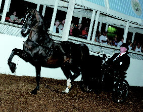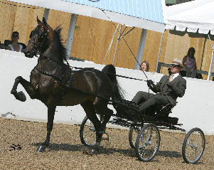 The celebrated show ring performer and sire of champions Stonecroft Byzantine has been purchased by PlayMor Farm. Cathy Hazen will take over the lines of the multi-world titled stallion in the Amateur Pleasure Driving division. Byzantine has been owned by Heidi Kunkel and trained by Rick Stevens for the past ten years since his purchase as a yearling. Byzantine’s record of achievement includes; tricolors in park harness, in hand, park saddle, English pleasure and pleasure driving. The current season has seen Byzantine earn Amateur Pleasure Driving Champion- ships at Vermont Spring Classic, Connecticut Morgan, and most recently the $10,000 winner take all championship at Northampton. Cathy Hazen and Stonecroft Byzantine will compete under the direction of Rick Stevens and Stonegate Farm at the 2007 Grand National before heading back to PlayMor Farm in Lexington, Kentucky.