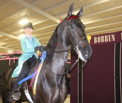 The new team of Alexa Dahl and CH Undulata’s Satchmo made their debut at Pro Am and won the Junior Exhibitor Three-Gaited Pleasure 13 and Under Championship after winning the qualifier earlier in the week to go two for two under the direction of trainer Lark Henry.