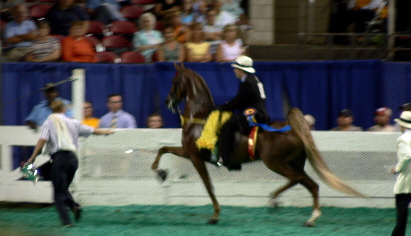 The golf carts begin to line up at the all-night schooling ring... the spectators' favorite after-show hangout.