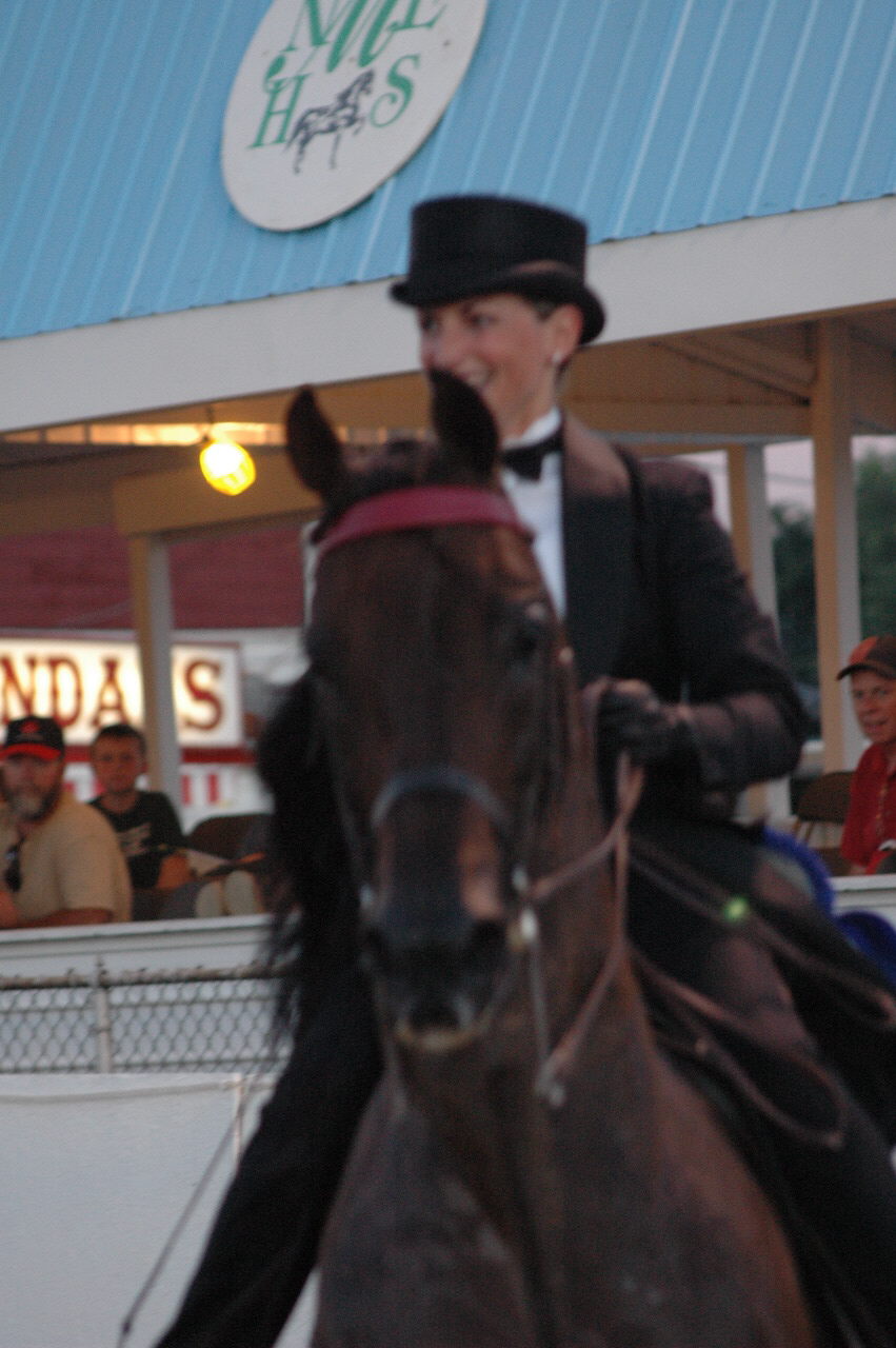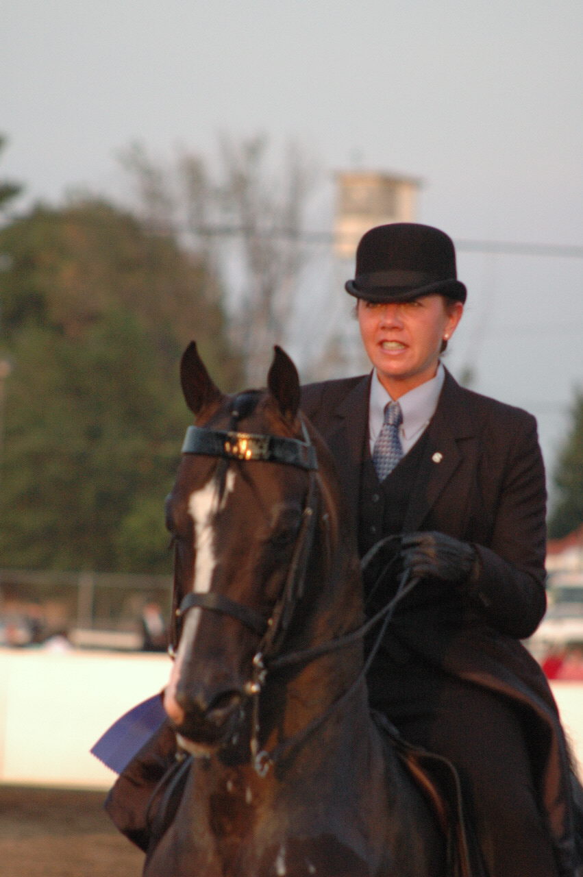 Queen's Victorian Lady and Sandy Hendrick celebrated a stellar victory in the 11 entry Amateur Park Saddle qualifier directed by David Rand.