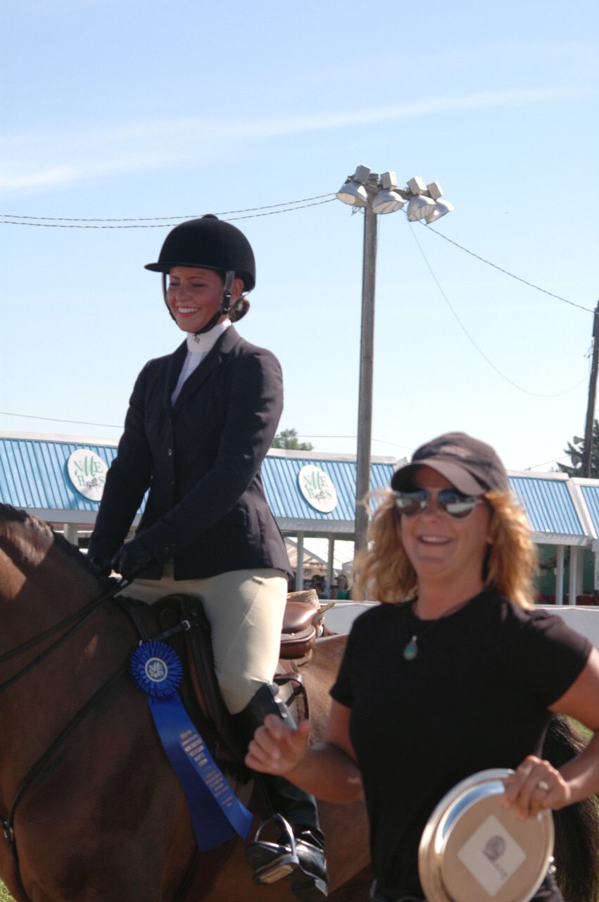 Emily Cook rode away with the blue ribbon in the 19 rider AMHA Hunt Seat Medal coached by Belle Hufferd.