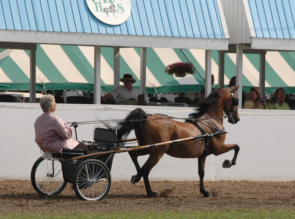 Fran Pugh celebrated her return to Northampton for the first time in 20 years with a victory pass in the Classic Pleasure Driving Stallion/Gelding class with Tara's War Eagle.