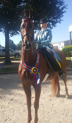 Zoe Schaffel and the expressive Wrapped In Chocolate were victorious in the Junior Exhibitor Three-Gaited Show Pleasure Stake class the Southeastern Charity Horse Show held in Conyers, GA.