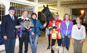 Chuck and Carol, please do the honors of removing his harness for the final time. Del Gianella, are you going to pull those shoes for us? And in the tradition of all great road horses, Carol [Court] will hang Posseman’s tail to pasture perfection.